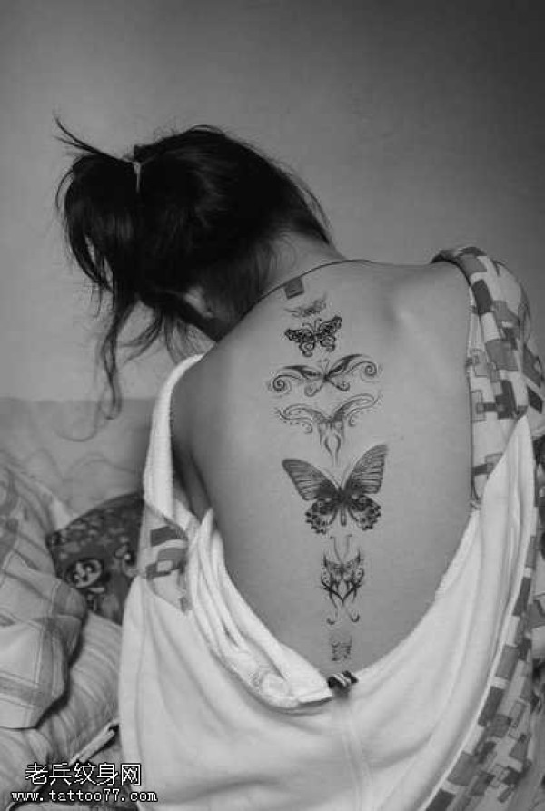 背部唯美的蝴蝶纹身图案