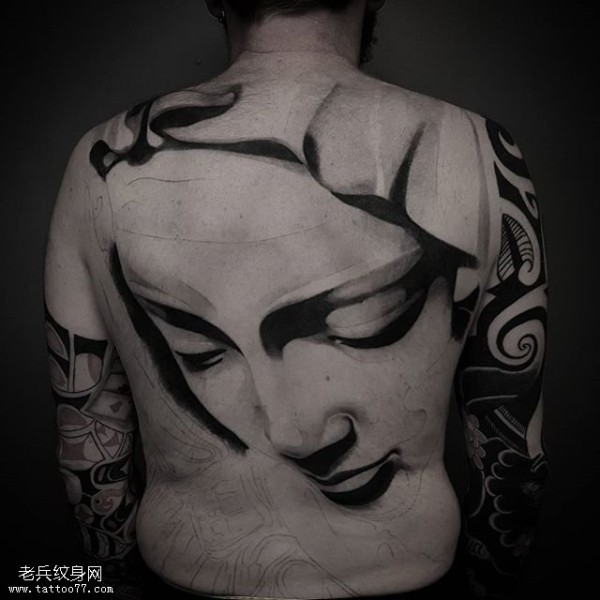 满背艺术肖像纹身图案