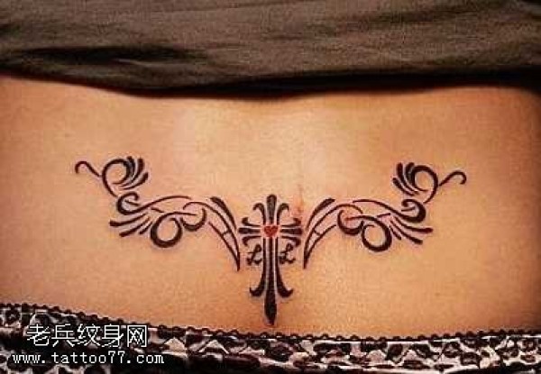 分享一款腰部时尚性感的蝶恋花纹身图案_腰部纹身图案大全_纹身图吧