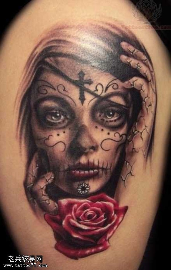 胳膊有女生头像纹身图案