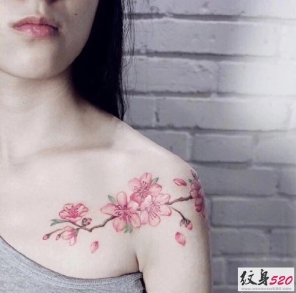 后肩唯美花藤英文图案图片_植物纹身图案大全_纹身图吧