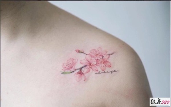 后肩唯美花藤英文图案图片_植物纹身图案大全_纹身图吧