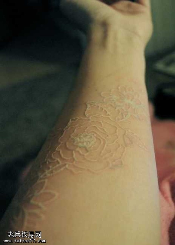 手臂白色玫瑰隐形纹身图案