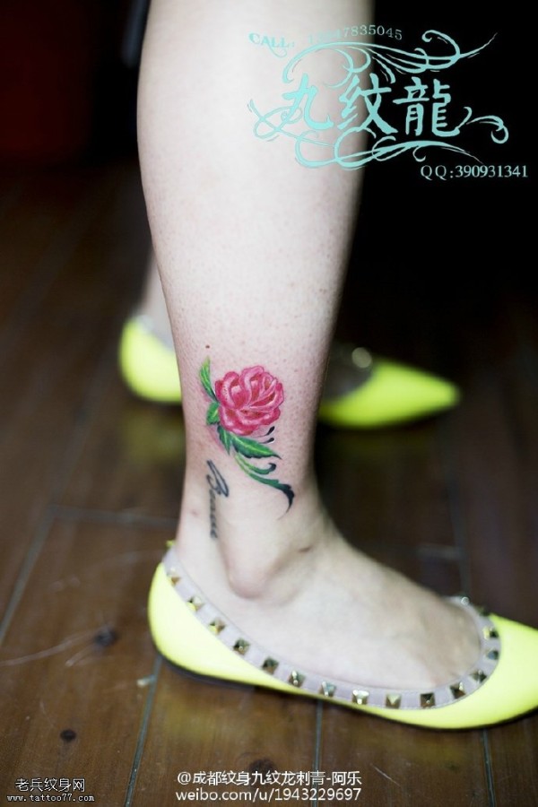 清新小桃花脚踝纹身_脚部纹身图案大全_纹身图吧