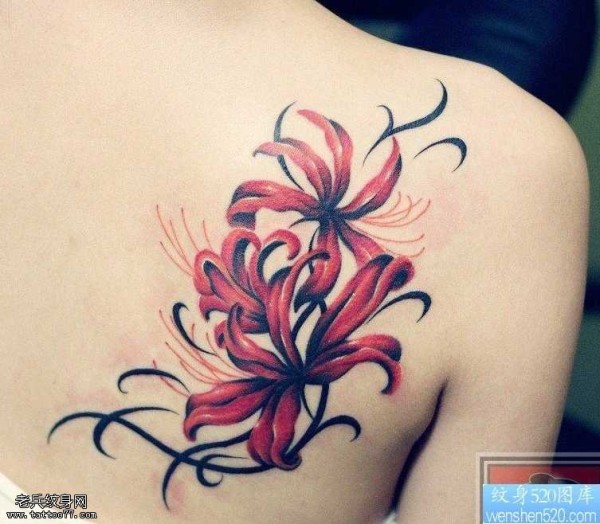 肩部彼岸花纹身图案