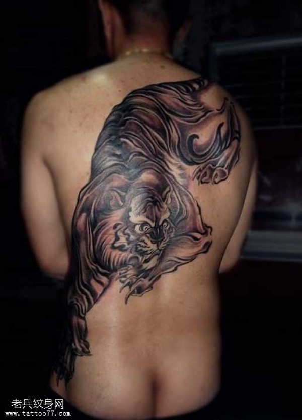后背下山虎纹身图案
