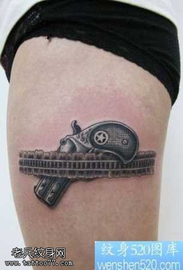 腿部左轮枪纹身图案