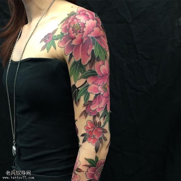 后肩唯美花藤英文图案图片_植物纹身图案大全_纹身图吧