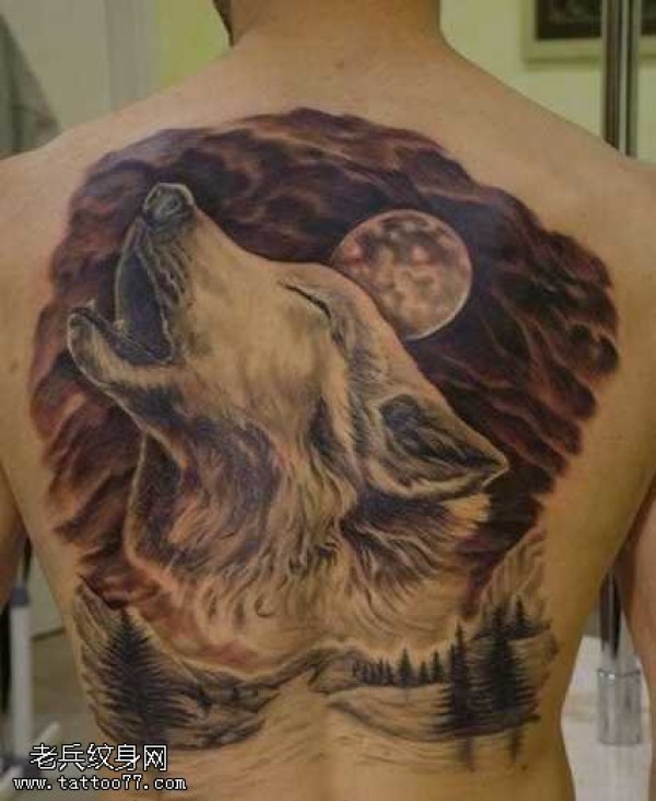 满背狼头纹身图案
