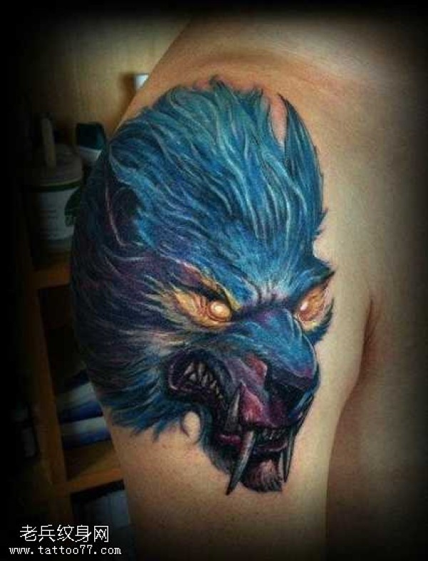 手臂超酷凶恶的狼头纹身图案