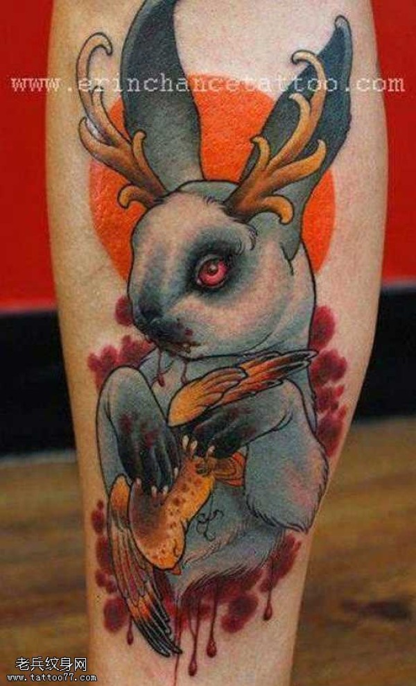 腿部兔子纹身图案