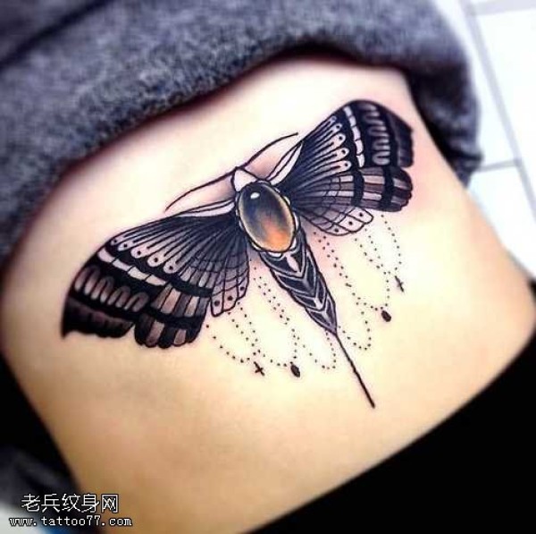 腰部一只飞蛾纹身图案