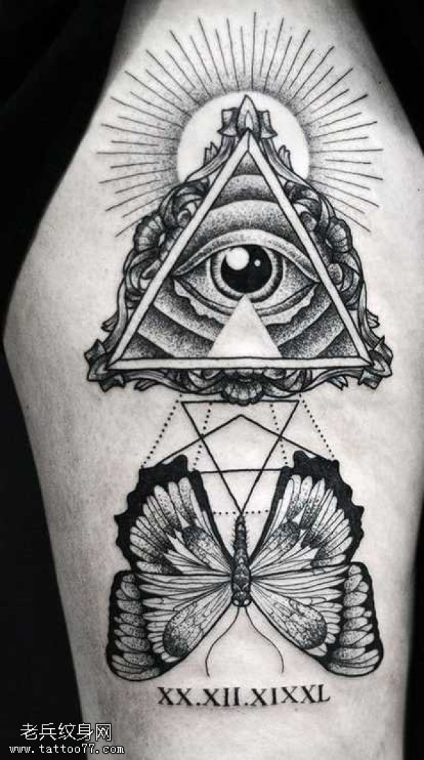 胳膊上帝之眼蝴蝶纹身图案