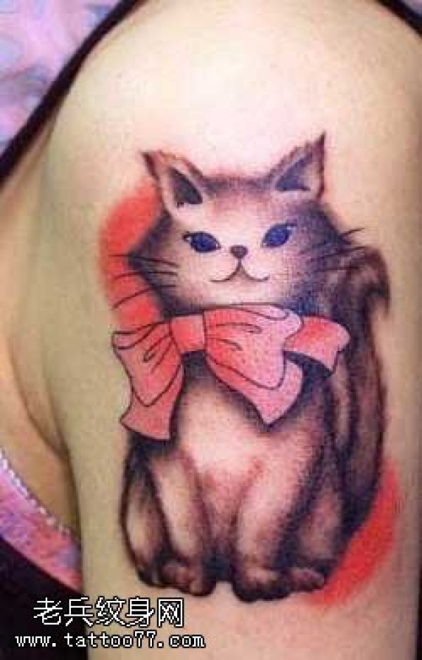 胳膊可爱的蝴蝶结猫咪纹身图案