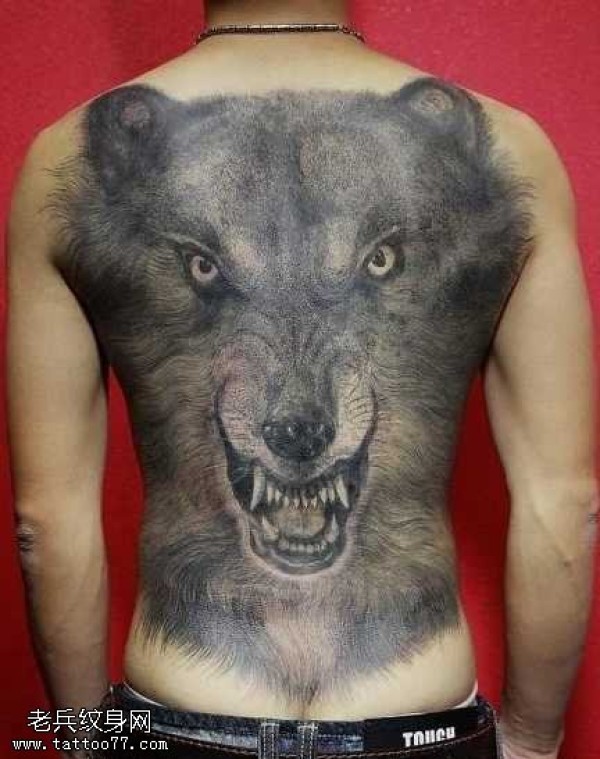 满背狼头纹身图案