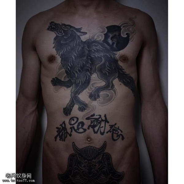 胸膛上的狼纹身图案