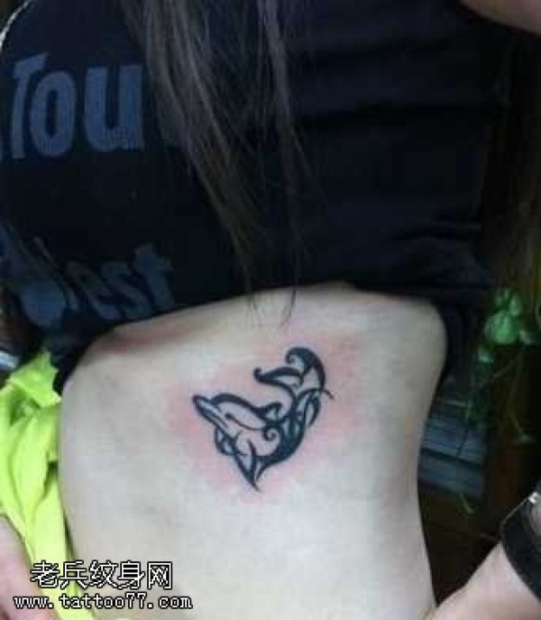 肋部图腾海豚纹身图案