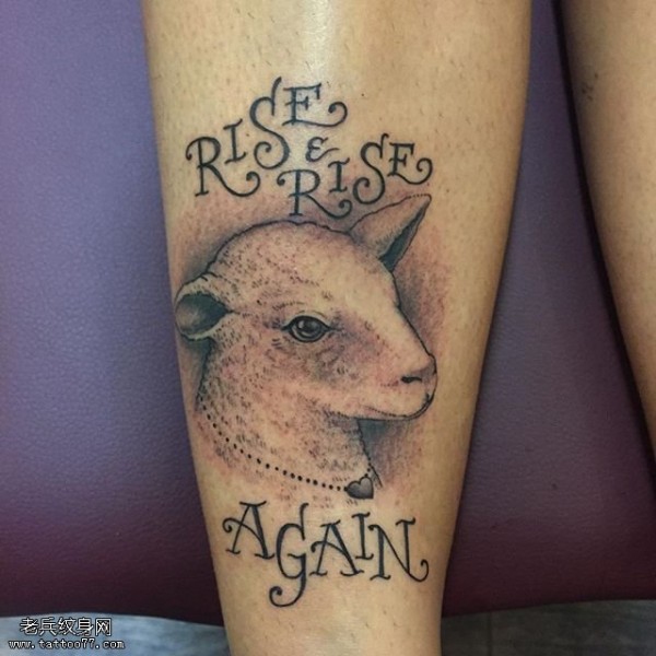小腿点刺经典小绵羊纹身图案