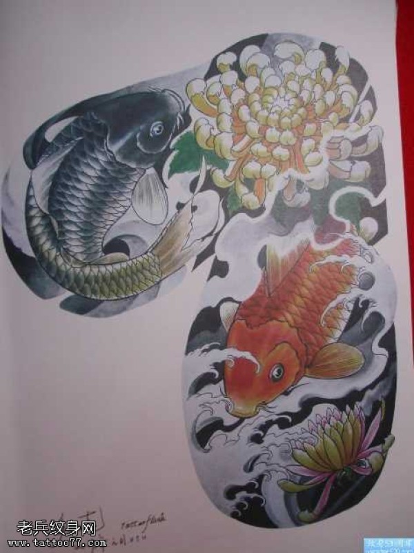 双鱼座纹身手稿_45张十二星座之双鱼手稿纹身图案