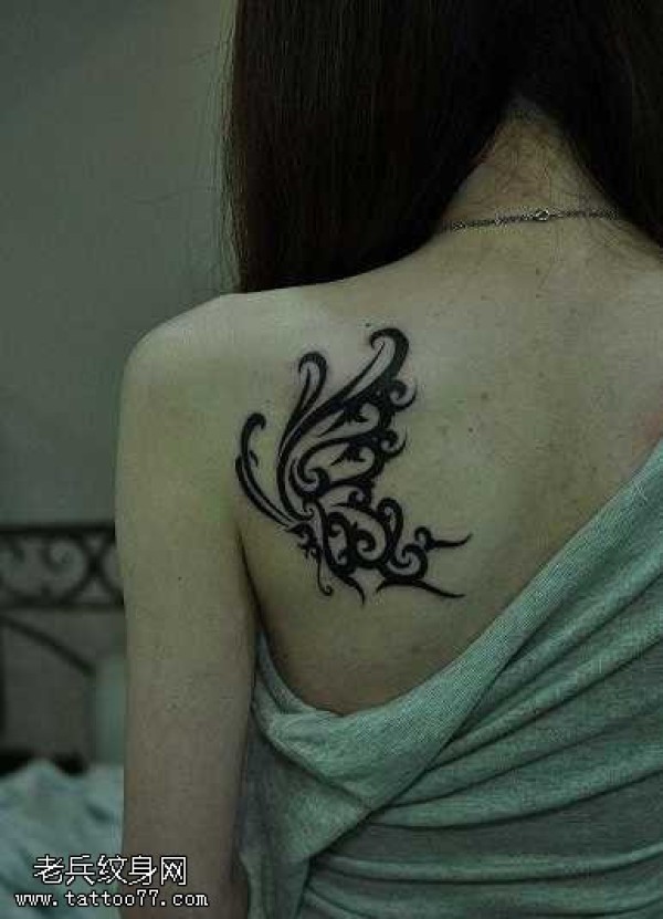 女生肩花纹身_15张女性双肩对称的肩花纹身图案作品图片