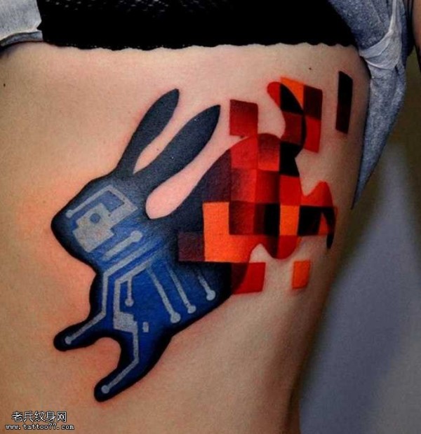 侧腰个性兔子纹身图案