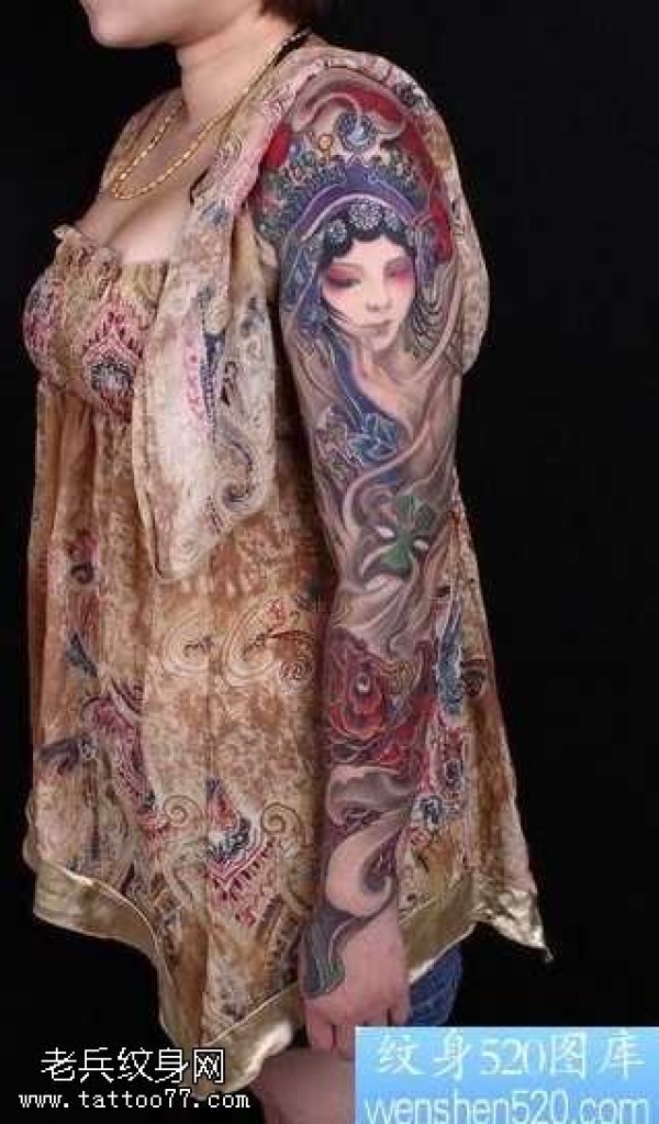 花臂花旦鲤鱼纹身图案
