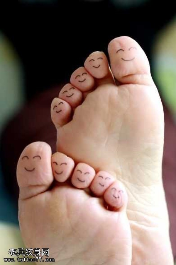 脚部可爱笑脸纹身图案