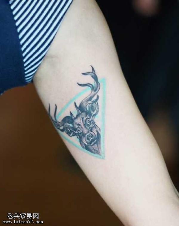 手臂小清新三角鹿纹身图案