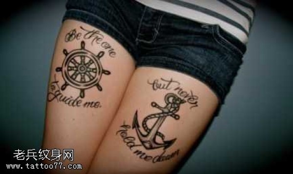 腿部船锚纹身图案
