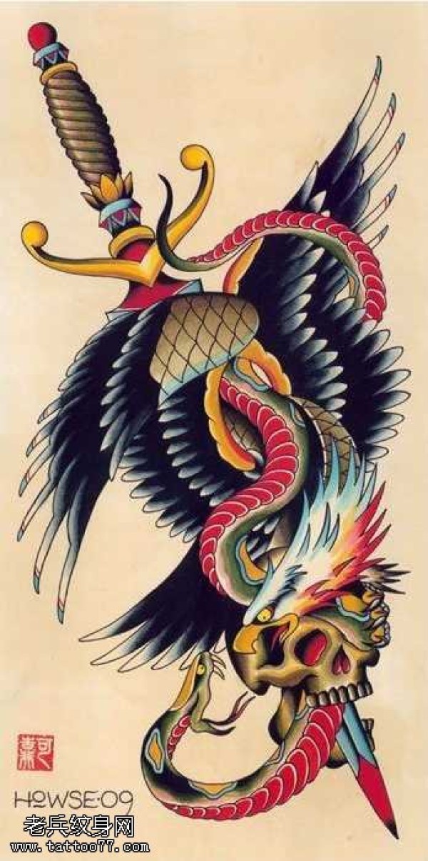 龙纹身手稿_一组老传统黑灰龙手稿纹身图案
