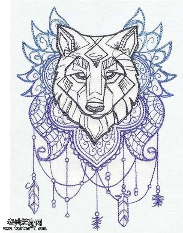 手稿一张狼头纹身图案