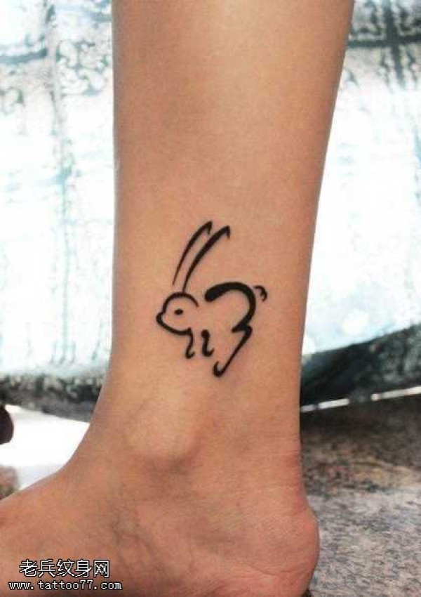 脚部黑兔子图腾纹身图案