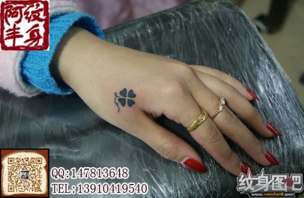 一组花手背纹身图案高调抢眼