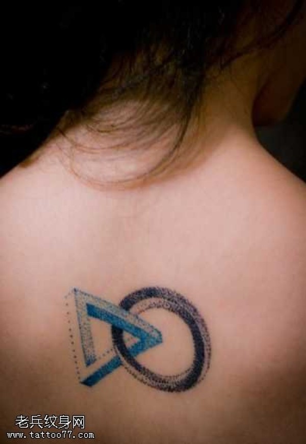 背部彩色几何体纹身图案