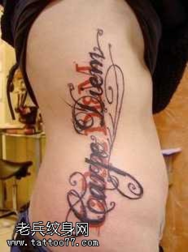 腰部漂亮的英文字母纹身图案