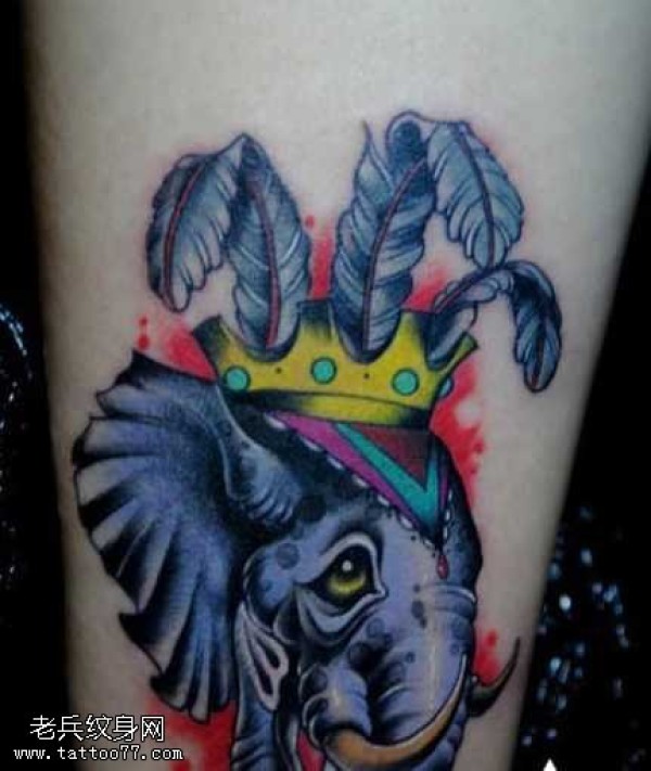 腿部彩色大象纹身图案