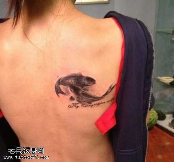 背部水墨鱼纹身图案