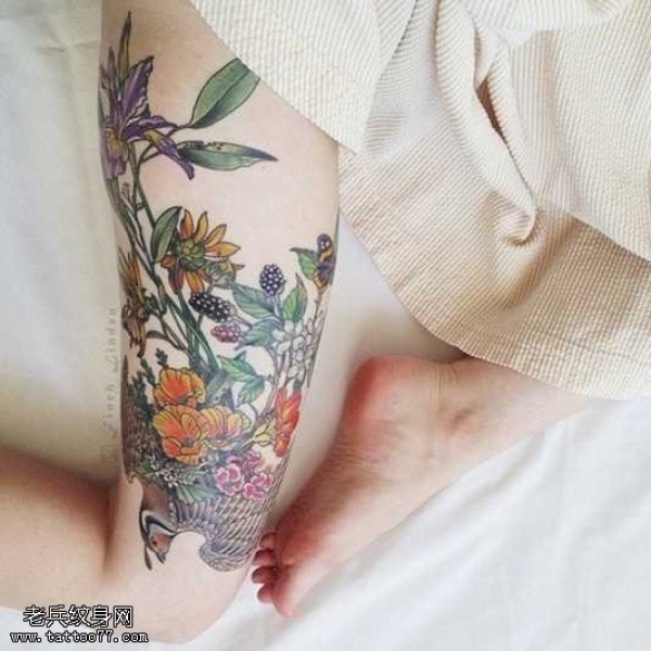传统花腿纹身--18张传统风格的大花腿纹身图案作品