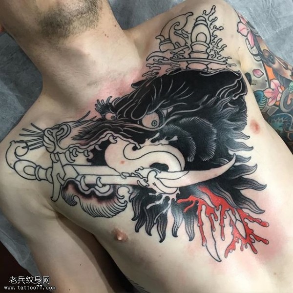 胸口的黑豹纹身图案