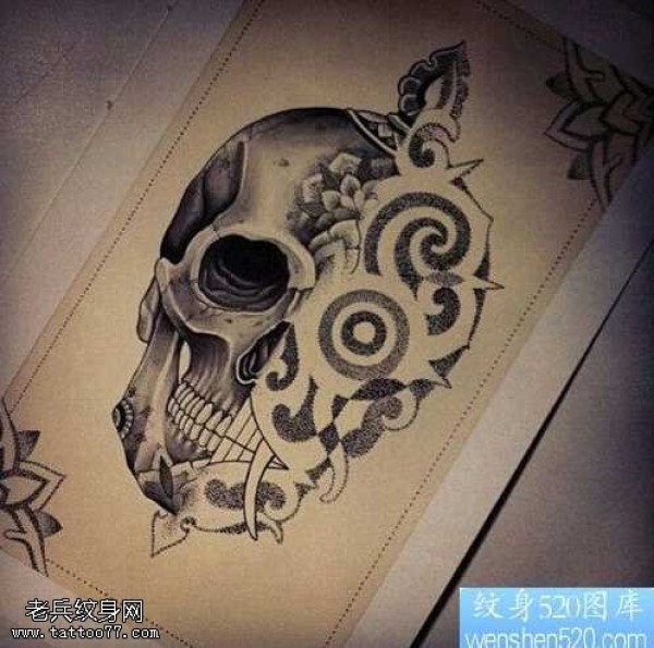 手稿大气的欧美骷髅头纹身图案