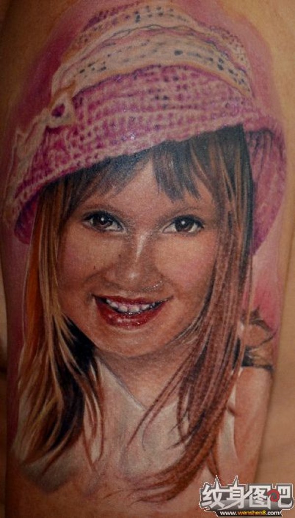 女性肩部肖像刺青_肖像纹身图案大全_纹身图吧