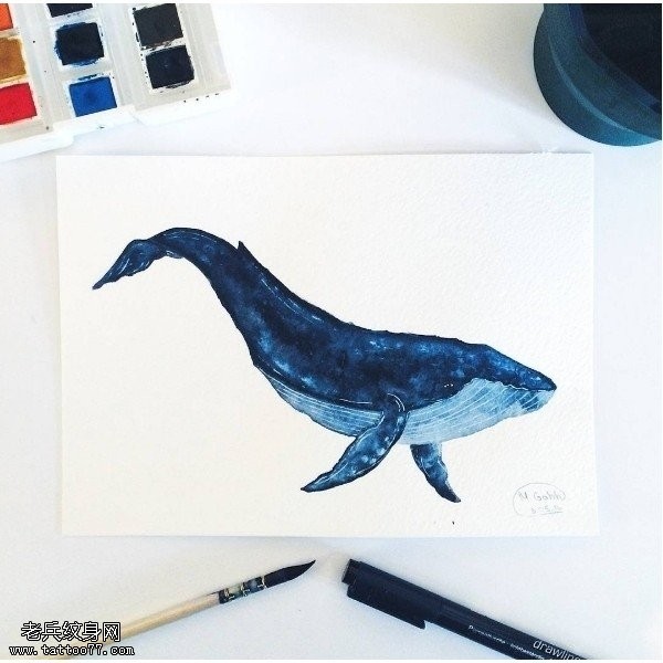 手稿蓝色鲨鱼纹身图案