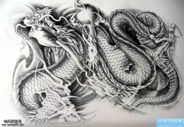 龙纹身手稿_一组老传统黑灰龙手稿纹身图案