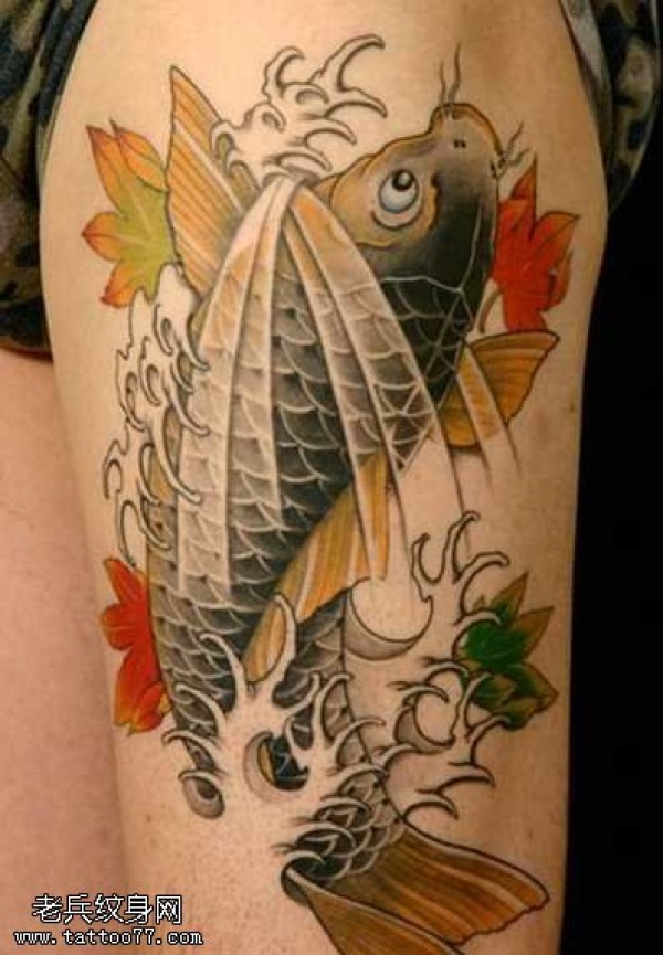 传统鲤鱼花小腿纹身_腿部纹身图案大全_纹身图吧