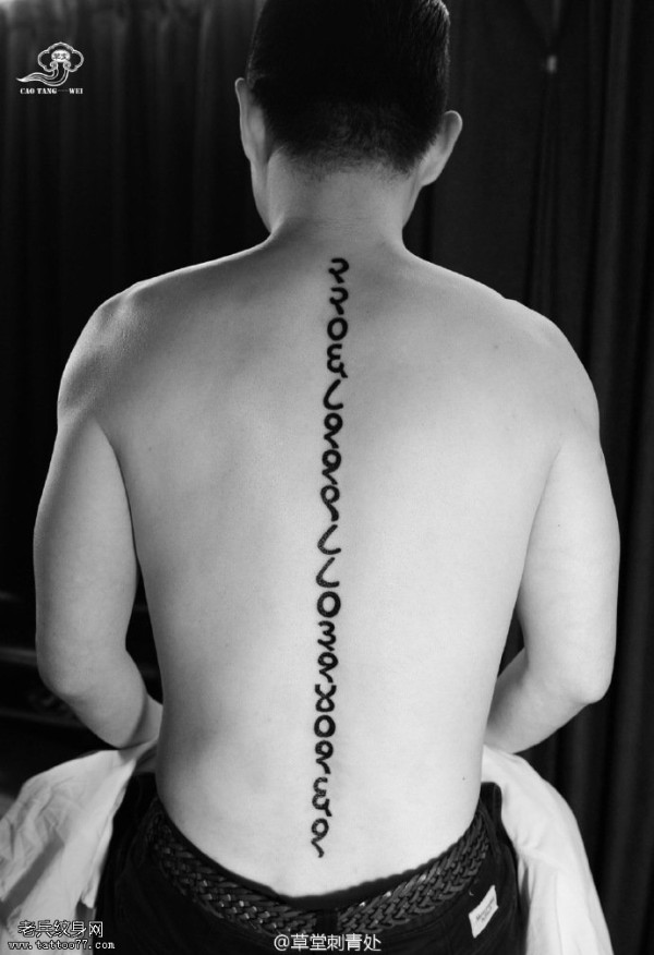 脊梁上的字符纹身图案