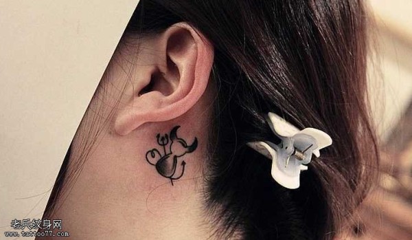 多款女生耳后黑色线条素描文艺小清新小图案纹身图案