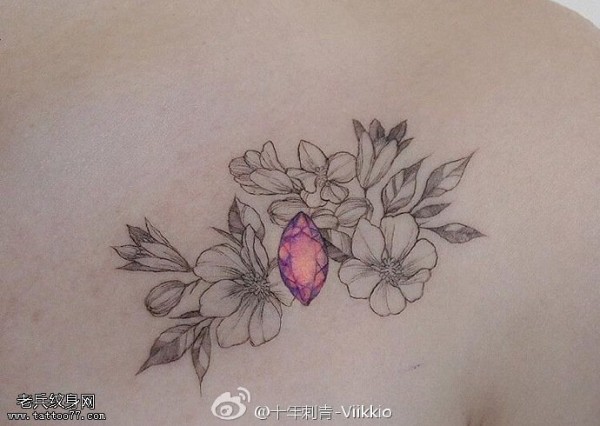 肩部点刺宝石花纹身图案