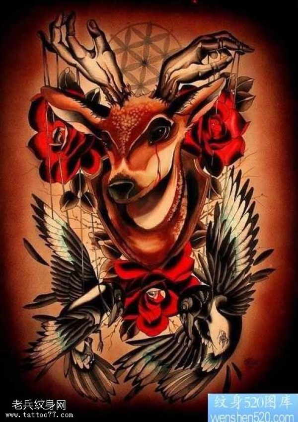 一组18张漂亮的欧美newschool动物纹身手稿图案