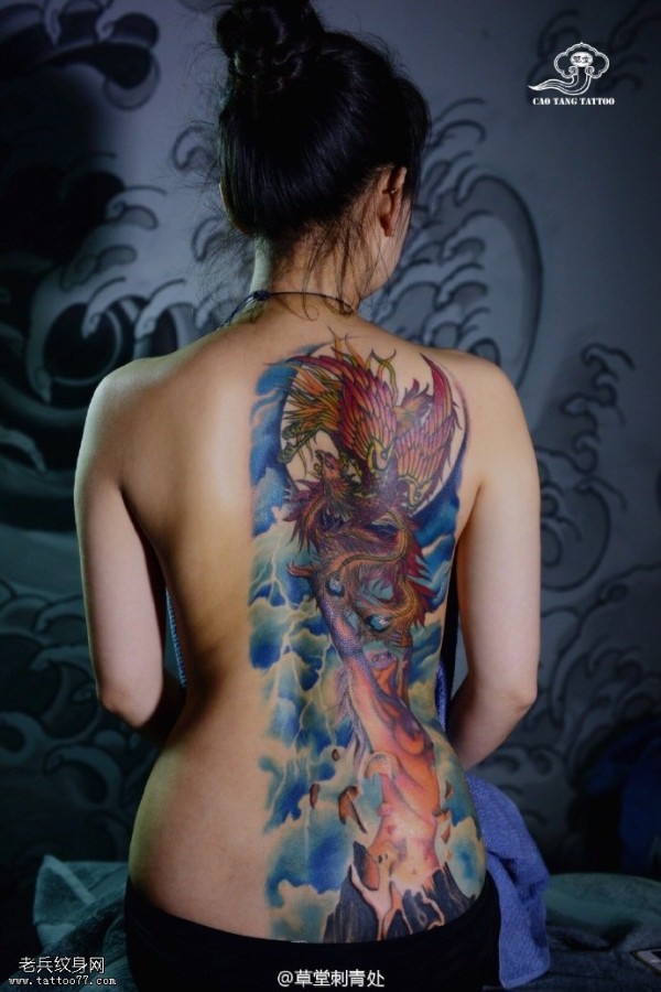 凤凰纹身 后背凤凰纹身人不多,但是很好看