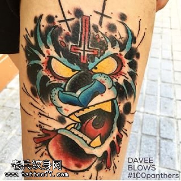 花腿纹身--一组大黑腿纹身图案作品欣赏